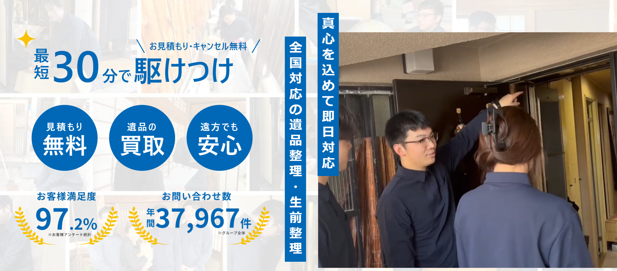 全国で遺品整理にお困りの方に、仕分け・分別・運び出し・遺品の供養などを一貫してお任せいただける遺品整理サービスです。